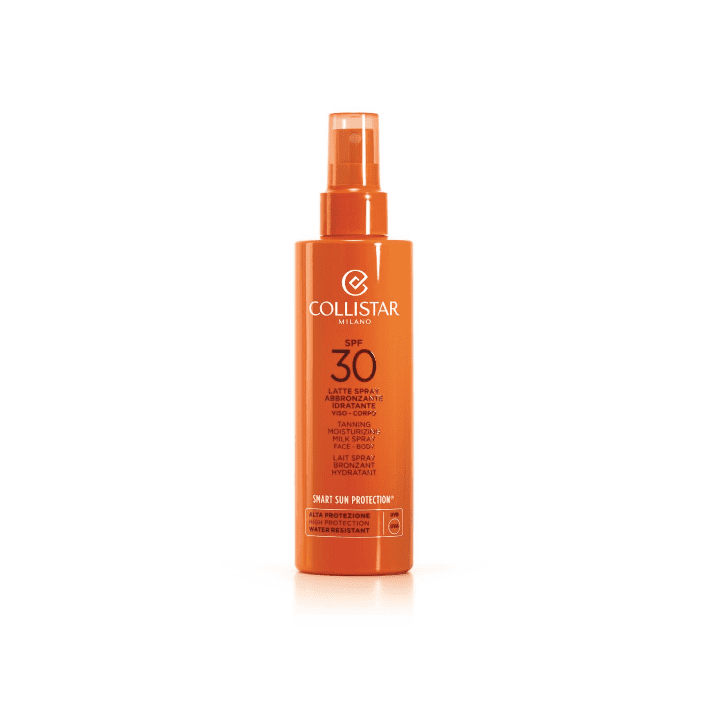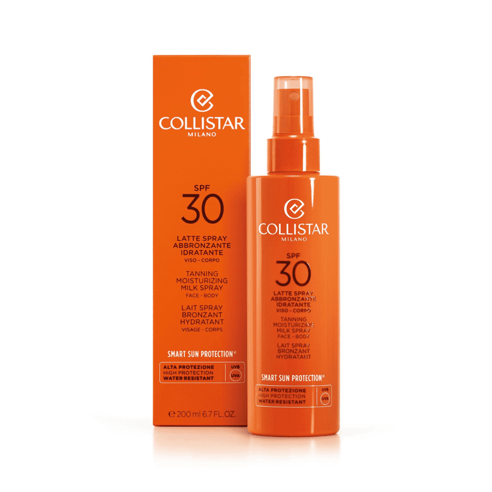 To Collistar Tanning Moisturizing Milk Spray Face-Body είναι αντηλιακό γαλάκτωμα σώματος και προσώπου σε μορφή σπρέι που συνδυάζει την εύκολη εφαρμογή με μια απολύτως πρωτοποριακή σύνθεση που εγγυάται ένα εξαιρετικά γρήγορο μαύρισμα ενώ ταυτόχρονα θεραπεύει την επιδερμίδα.