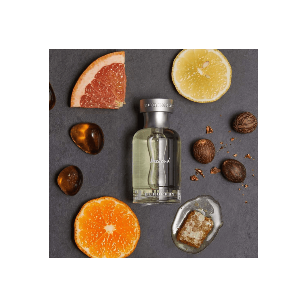 Το Burberry Weekend For Men Eau de Toilette είναι ένα ανδρικό άρωμα που συνδυάζει νότες κορυφής από λεμόνι, γκρειπ φρουτ, Περγαμόντο, ανανά, Μανταριν ορανζ και πεπόνι, με μεσαίες νότες από κισσό, βρύα δρυός και σανδαλόξυλο. Οι νότες βάσης αποτελούνται από μέλι, Μόσχο και Κεχριμπάρι.