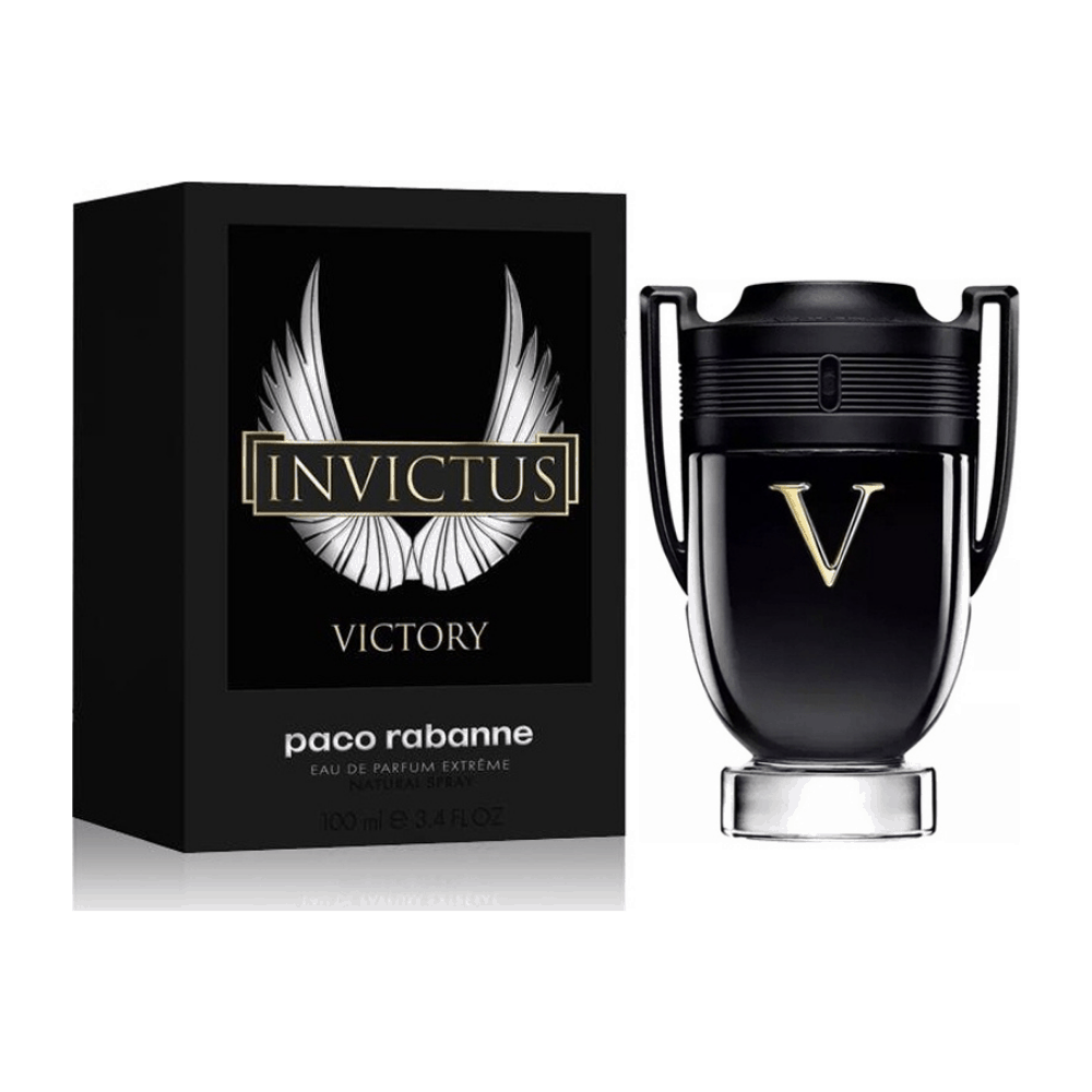 To Paco Rabanne Invictus Victory Eau De Parfum Extreme είναι ένα εξαιρετικά δυνατό και φρέσκο ανατολίτικο άρωμα, που συνδυάζει νότες κορυφής από λεμόνι και ροζ πιπέρι,μεσαίες νότες από λεβάντα και λιβάνι και νότες βάσης από βανίλια, σπόρο τόνκα και κεχριμπάρι ο τέλειος συνδυασμός μεταξύ τους δημιουργεί μια έντονης φρεσκάδας και μια μαγνητική ένταση μοναδική.