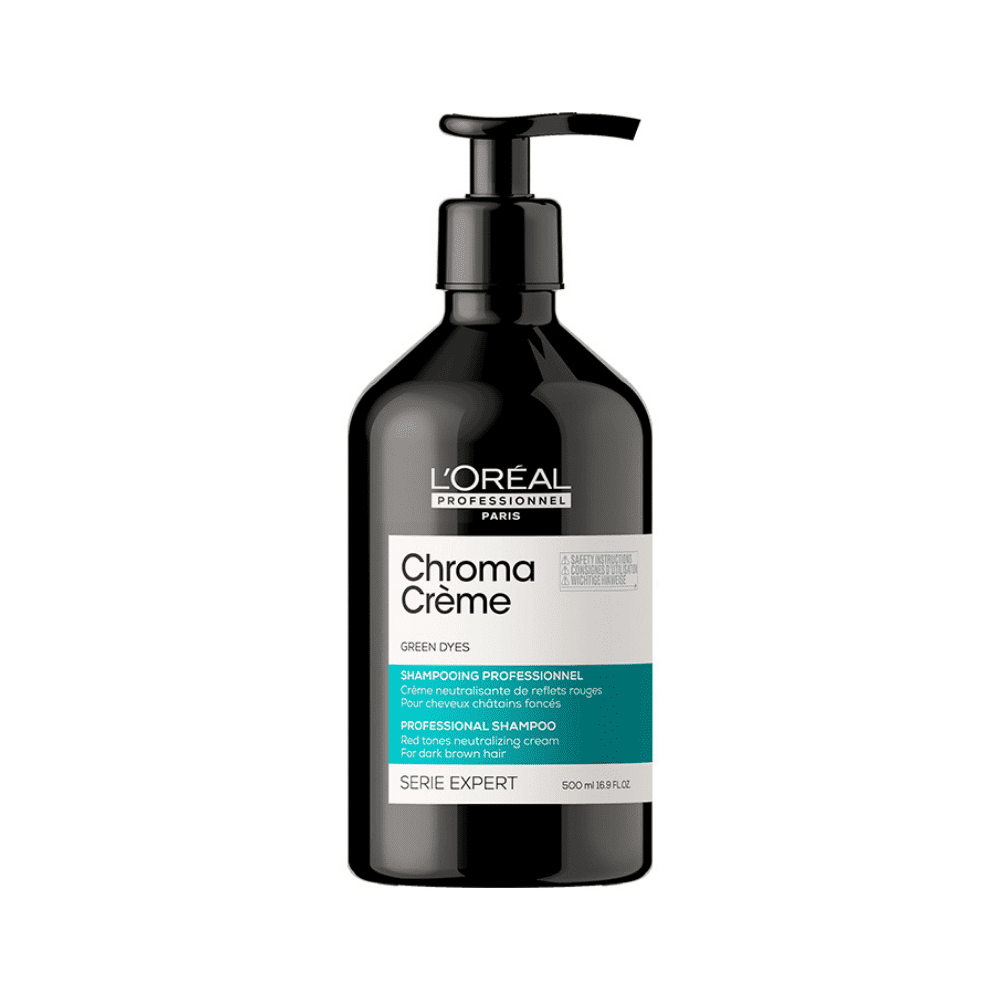 Καθώς το πράσινο χρώμα αποδυναμώνει τους πορτοκαλί τόνους, επιλέξτε το Chroma Crème με πράσινες χρωστικές για σκούρα καστανά έως μαύρα μαλλιά.