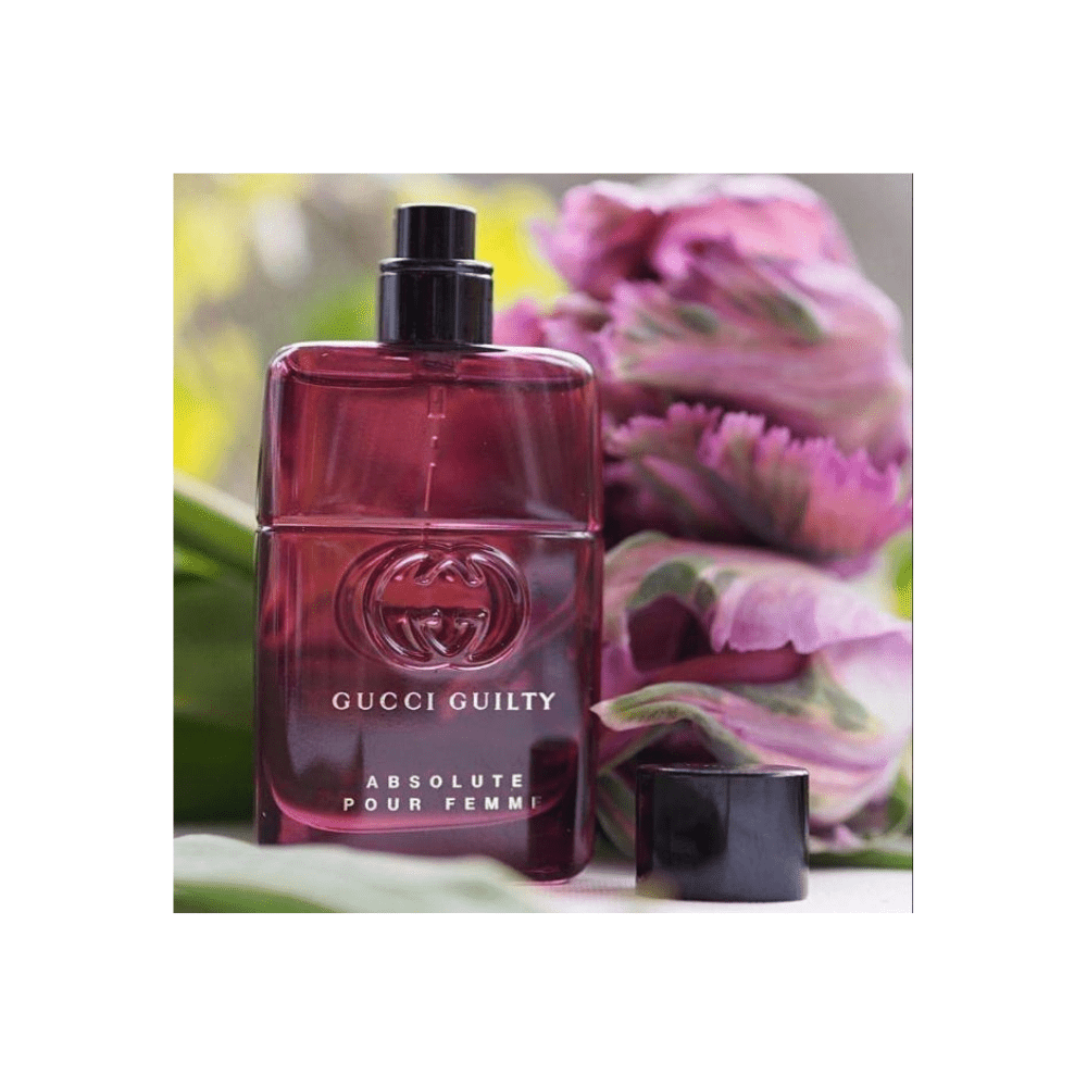To Gucci Guilty Absolute Pour Femme είναι ένα γυναικείο άρωμα που συνδυάζει νότες κορυφής από βατόμουρο, περγαμόντο και ροζ πιπέρι με μεσαίες νότες από τριαντάφυλλο Βουλγαρίας κυπαρίσσι, νότες ξύλων και βέτιβερ. Οι νότες βάσης αποτελούνται από πατσουλί κεχριμπάρι και ινδικό πατσουλί.