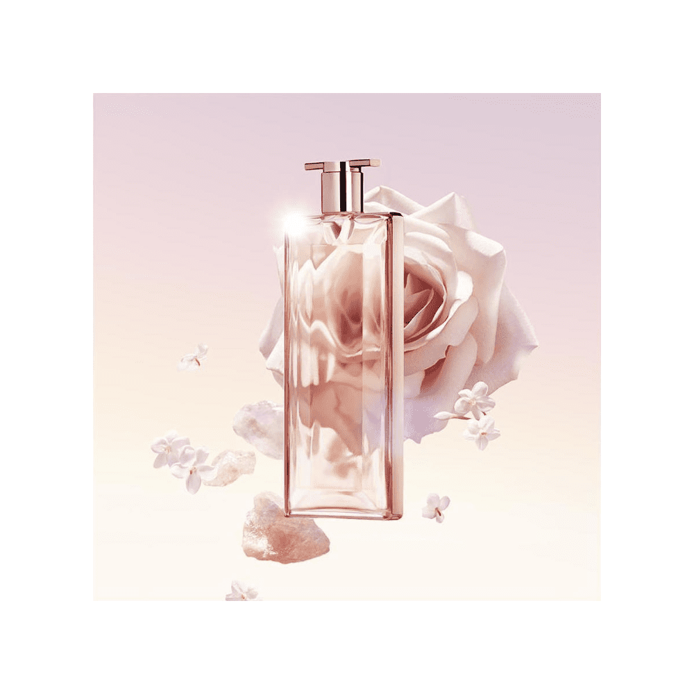 Έχοντας ως αφετηρία μια «καθαρή» αρωματική συμφωνία που θα ξεφεύγει από κάθε τι παραδοσιακό, η Lancôme θέλησε να επαναπροσδιορίσει μια νότα που ήταν ανέκαθεν πολύ αγαπημένη της, από τότε που την επέλεξε ως το πρώτο σύμβολο της μάρκας, και στράφηκε στο τριαντάφυλλο. Για να δημιουργήσει μια νότα που να ταιριάζει με το λουλούδι, χορτώδη αλλά και τρυφερή, δροσερή αλλά και αισθησιακή, τέσσερις εξαιρετικές ιδιότητες, η Lancôme συνδύασε δύο αιθέρια έλαια, ένα absolute και ένα ροδόνερο, για να σχηματίσει την καρδιά της σύνθεσης. Ελαφρώς ενισχυμένο με ένα ίχνος γιασεμιού, αυτό το καλειδοσκόπιο τριαντάφυλλων ακτινοβολεί ένα λαμπερό, λουλουδάτο φως. Στο φόντο, ένα ίχνος πατσουλί και ένας συνδυασμός λευκών μόσχων συνθέτουν μια λευκή βάση chypre που ολοκληρώνει την κομψότητα του Idôle.