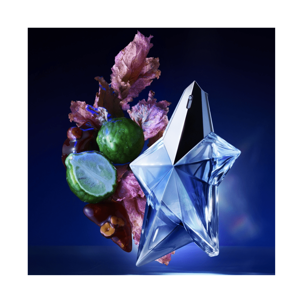 To Mugler Angel Eau de Parfum είναι ένα γυναικείο άρωμα που συνδυάζει νότες κορυφής από περγαμόντο, πεπόνι, καρύδα, μανταριν ορανζ, και ανανά με μεσαίες νότες από κύμινο, μοσχοκάρυδο, μέλι, βερίκοκο, βατόμουρο, δαμάσκηνο, ροδάκινο, γιασεμί, τριαντάφυλλο και κόκκινα μούρα. Οι νότες βάσης αποτελούνται από σπόρους Τόνκα, βανίλια, πατσουλί, κεχριμπάρι, μόσχο, σοκολάτα και καραμέλα.