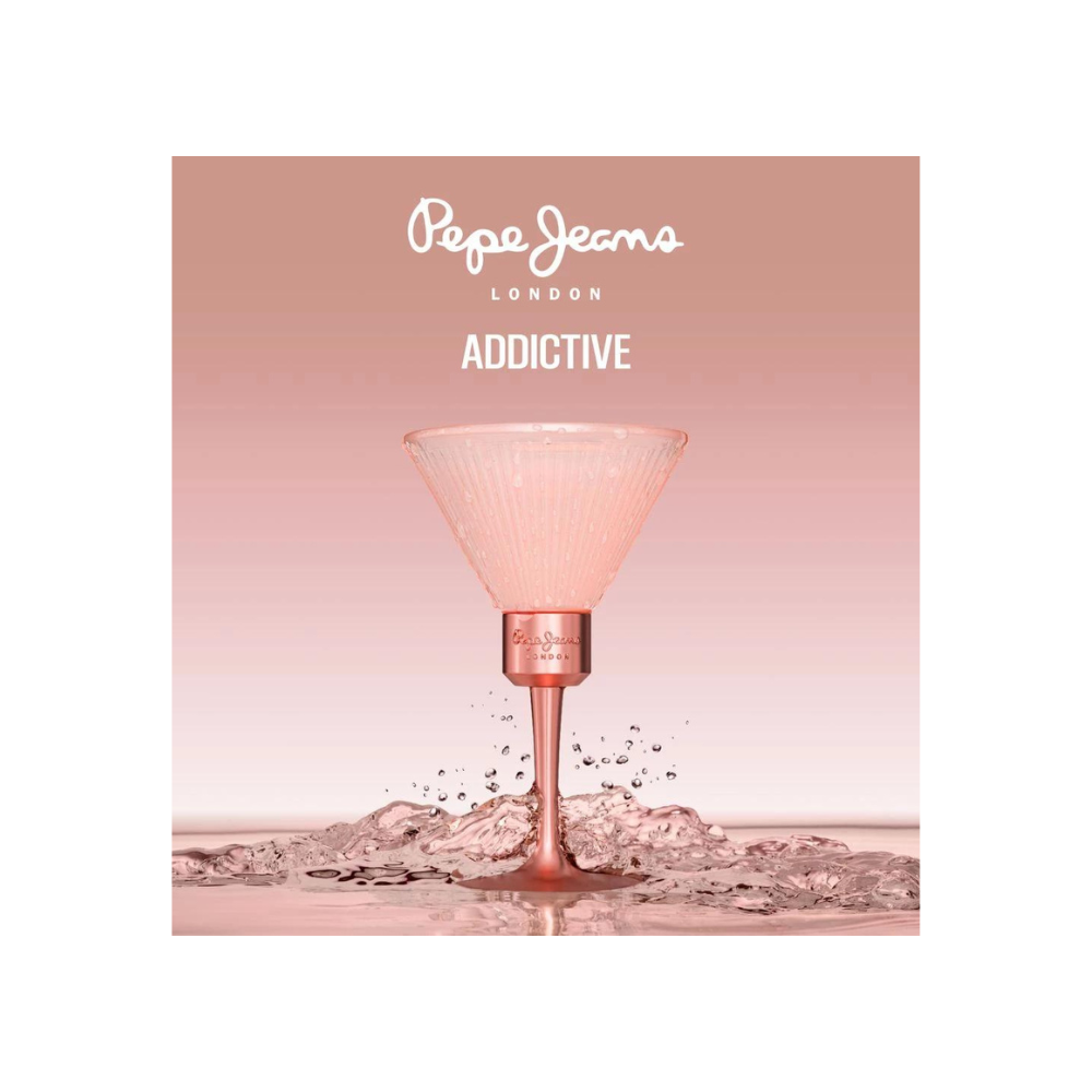 To Pepe Jeans Addictive For Her Eau de Parfum είναι ένα γυναικείο άρωμα που συνδυάζει νότες κορυφής από μάνγκο, αχλάδι και περγαμόντο με μεσαίες νότες από γαρδένια, άνθη πορτοκαλιάς και κεχριμπάρι. Οι νότες βάσης είναι μόσχος, σανδαλόξυλο και κέδρος.