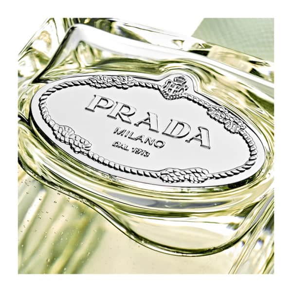 Το μπουκάλι του Infusion d’Iris ακολουθεί πιστά όλους τους κώδικες της Prada: vintage και σοφιστικέ, με ένα ίχνος φαντασίας χάρη στο πράσινο πώμα από δέρμα Saffiano που παραπέμπει στο πρωταγωνιστικό συστατικό