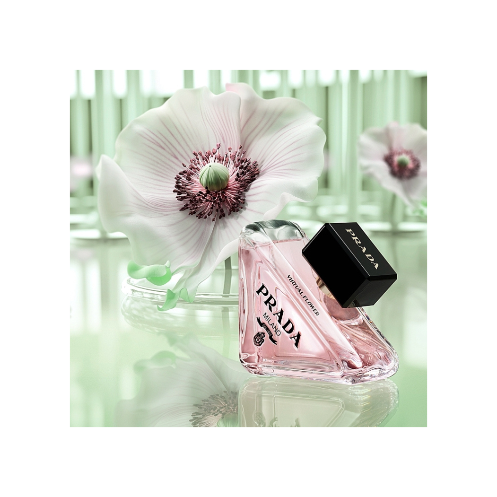 Πιστή στο δημιουργικό και καινοτόμο πνεύμα της, η Prada διευρύνει τα όρια της αισθητηριακής αντίληψης και προκαλεί την κατανόηση της πραγματικότητας. Το Prada Paradoxe Virtual Flower ενσαρκώνει αυτή την αναζήτηση για την πρωτοπορία ως την επιτομή μιας θηλυκότητας Prada Paradoxe που αμφισβητεί τις παραδοσιακές προσδοκίες. Επαναπροσδιορίζοντας την έννοια του florality, ένα από τα πιο διάσημα σύμβολα της θηλυκότητας, οι γυναίκες Paradoxe επανερμηνεύουν τα κλασικά χαρακτηριστικά για να αμφισβητήσουν τις παραδόσεις. Το Paradoxe Virtual Flower υπογράφει ως ένα λουλουδάτο musk που αμφισβητεί τα όρια της αισθητηριακής αντίληψης. Για να ανοίξουν μια νέα προοπτική στην ανθοκομία, οι κύριοι αρωματοποιοί μας Nadège Le Garlantezec, Shyamala Maisondieu και Antoine Maisondieu επέλεξαν ένα από τα πιο εκλεπτυσμένα λουλούδια στην αρωματοποιία και ήθελαν να το εκφράσουν όπως ποτέ άλλοτε: το γιασεμί. Αξιοποίησαν τη δύναμη της Τεχνητής Νοημοσύνης για να δημιουργήσουν μια μοναδική συμφωνία Prada που συλλαμβάνει το άρωμα του λουλουδιού στη φύση. Νότες κορυφής από το ιταλικό Vert de Bergamot που υποβάλλονται σε μια συγκεκριμένη διαδικασία ψυχρής έκφρασης και μοριακής απόσταξης για να αποκαλύψουν τις πιο πράσινες και φρέσκες πτυχές αυτού του εμβληματικού συστατικού. Νότες καρδιάς Neroli και μια συμφωνία Jasmine AI που γεννήθηκε από την Τεχνητή Νοημοσύνη, για να εκφράσει τέλεια το αέρινο και ζωντανό άρωμα του γιασεμιού στη φύση. Νότες βάσης από SerenolideTM Musk και Ambrette, για να δημιουργήσουν μια καθαρή και ανακουφιστική αίσθηση δεύτερου δέρματος.