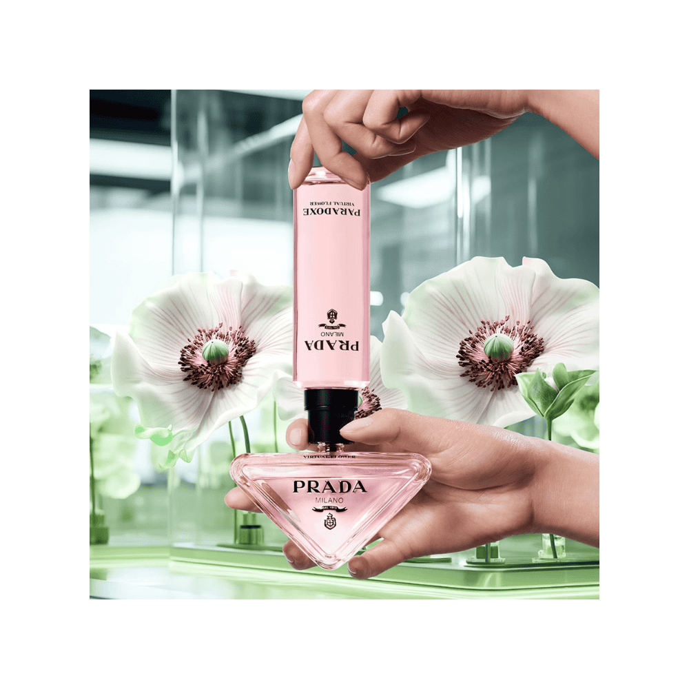 Πιστή στο δημιουργικό και καινοτόμο πνεύμα της, η Prada διευρύνει τα όρια της αισθητηριακής αντίληψης και προκαλεί την κατανόηση της πραγματικότητας. Το Prada Paradoxe Virtual Flower ενσαρκώνει αυτή την αναζήτηση για την πρωτοπορία ως την επιτομή μιας θηλυκότητας Prada Paradoxe που αμφισβητεί τις παραδοσιακές προσδοκίες. Επαναπροσδιορίζοντας την έννοια του florality, ένα από τα πιο διάσημα σύμβολα της θηλυκότητας, οι γυναίκες Paradoxe επανερμηνεύουν τα κλασικά χαρακτηριστικά για να αμφισβητήσουν τις παραδόσεις. Το Paradoxe Virtual Flower υπογράφει ως ένα λουλουδάτο musk που αμφισβητεί τα όρια της αισθητηριακής αντίληψης. Για να ανοίξουν μια νέα προοπτική στην ανθοκομία, οι κύριοι αρωματοποιοί μας Nadège Le Garlantezec, Shyamala Maisondieu και Antoine Maisondieu επέλεξαν ένα από τα πιο εκλεπτυσμένα λουλούδια στην αρωματοποιία και ήθελαν να το εκφράσουν όπως ποτέ άλλοτε: το γιασεμί. Αξιοποίησαν τη δύναμη της Τεχνητής Νοημοσύνης για να δημιουργήσουν μια μοναδική συμφωνία Prada που συλλαμβάνει το άρωμα του λουλουδιού στη φύση. Νότες κορυφής από το ιταλικό Vert de Bergamot που υποβάλλονται σε μια συγκεκριμένη διαδικασία ψυχρής έκφρασης και μοριακής απόσταξης για να αποκαλύψουν τις πιο πράσινες και φρέσκες πτυχές αυτού του εμβληματικού συστατικού. Νότες καρδιάς Neroli και μια συμφωνία Jasmine AI που γεννήθηκε από την Τεχνητή Νοημοσύνη, για να εκφράσει τέλεια το αέρινο και ζωντανό άρωμα του γιασεμιού στη φύση. Νότες βάσης από SerenolideTM Musk και Ambrette, για να δημιουργήσουν μια καθαρή και ανακουφιστική αίσθηση δεύτερου δέρματος.
