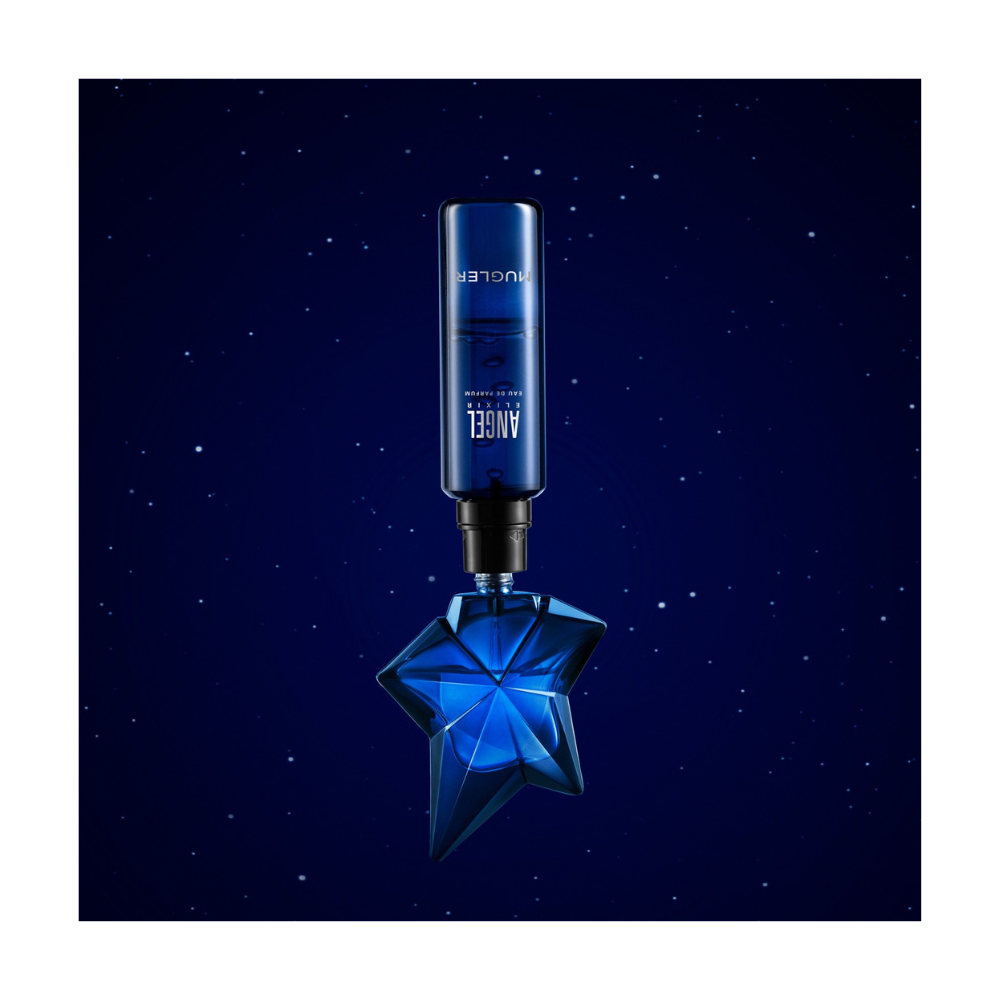 Είναι η ψυχή του ΑNGEL, αλλά με μια νέα πνοή. Ένα ANGEL απροσδόκητο. Ένα αυθεντικό ελιξίριο, που εκφράζει την νέα, ισχυρή θηλυκότητα των σημερινών ατρόμητων υπερ-γυναικών. Αθώο αλλά δυνατό. Προσγειωμένο αλλά και εξωπραγματικό. Εξαιρετικά προκλητικό αλλά και συμπεριληπτικό. Με το Angel Elixir γεννιέται ένα νέο αστέρι. Ένα εντελώς πρωτότυπο, ξυλώδες λουλουδάτο gourmand άρωμα που ανακαλύπτει εκ νέου αυτό που κάνει το Angel Eau de Parfum τόσο μοναδικό. Το εμβληματικό μπουκάλι σε σχήμα αστεριού του Mugler, αποκτά ένα μαγευτικό βαθύ μπλε χρώμα και κλείνει μέσα του τη χαρακτηριστική υπογραφή του Angel, που μετατρέπεται αυτή τη φορά σε έναν λουλουδάτο γαλαξία. Ένας σπινθήρας από μεταλλικά μπαχαρικά. Ένα λαμπερό γαλαξιακό λουλουδάτο μπουκέτο που εφευρέθηκε από τον Mugler. Ένα πολυτελές νεφέλωμα από εκχύλισμα βανίλιας, που ενισχύεται από ξυλώδες Amber Xtreme™. Το Angel Elixir είναι κάτι παραπάνω από ένα άρωμα, είναι ο καταλύτης που θα σας κάνει να επαναπροσδιορίσετε τον εαυτό σας. Γιατί ο πραγματικός κόσμος δεν είναι αρκετός…