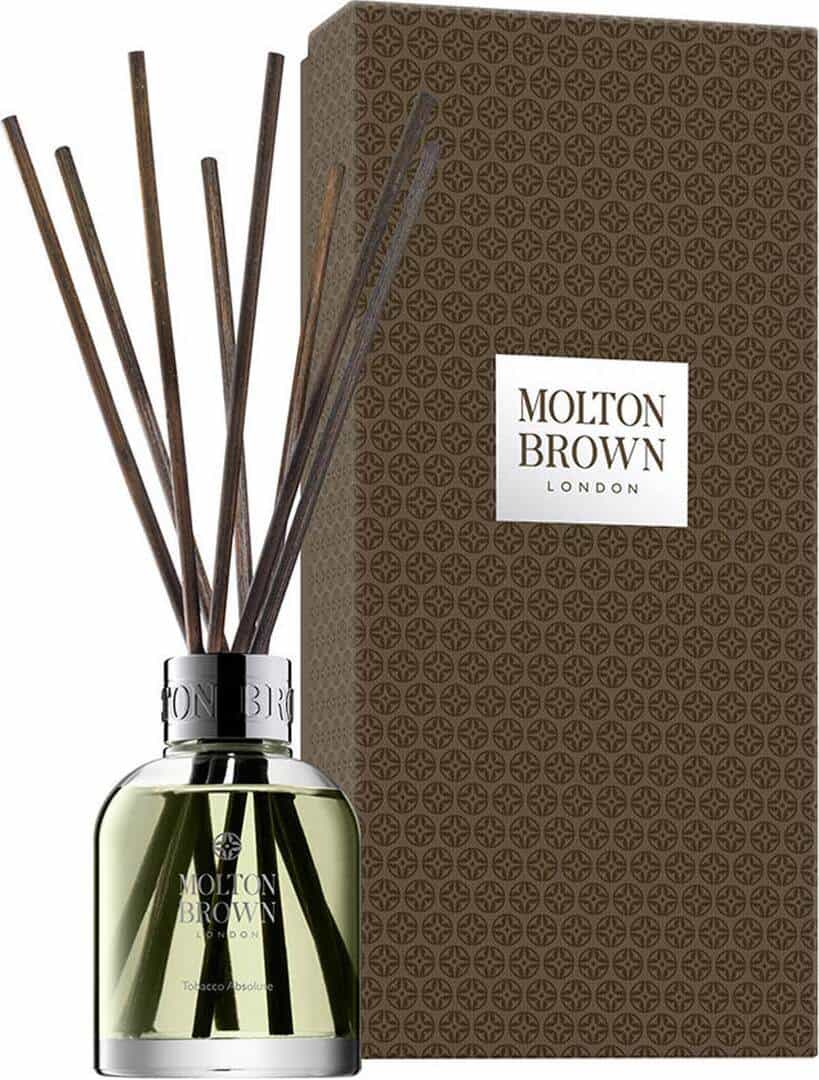 Ξυλώδες αρωματικό χώρου από τον οίκο Molton Brown που συνδυάζει νότες κορυφής από έλεμι, περγαμόντο και γκρέιπφρουτ με μεσαίες νότες από κέδρο, μοσχοκάρυδο και τριαντάφυλλο. Οι νότες βάσης αποτελούνται από tobacco, δέρμα και Περουβιανό βάλσαμο.