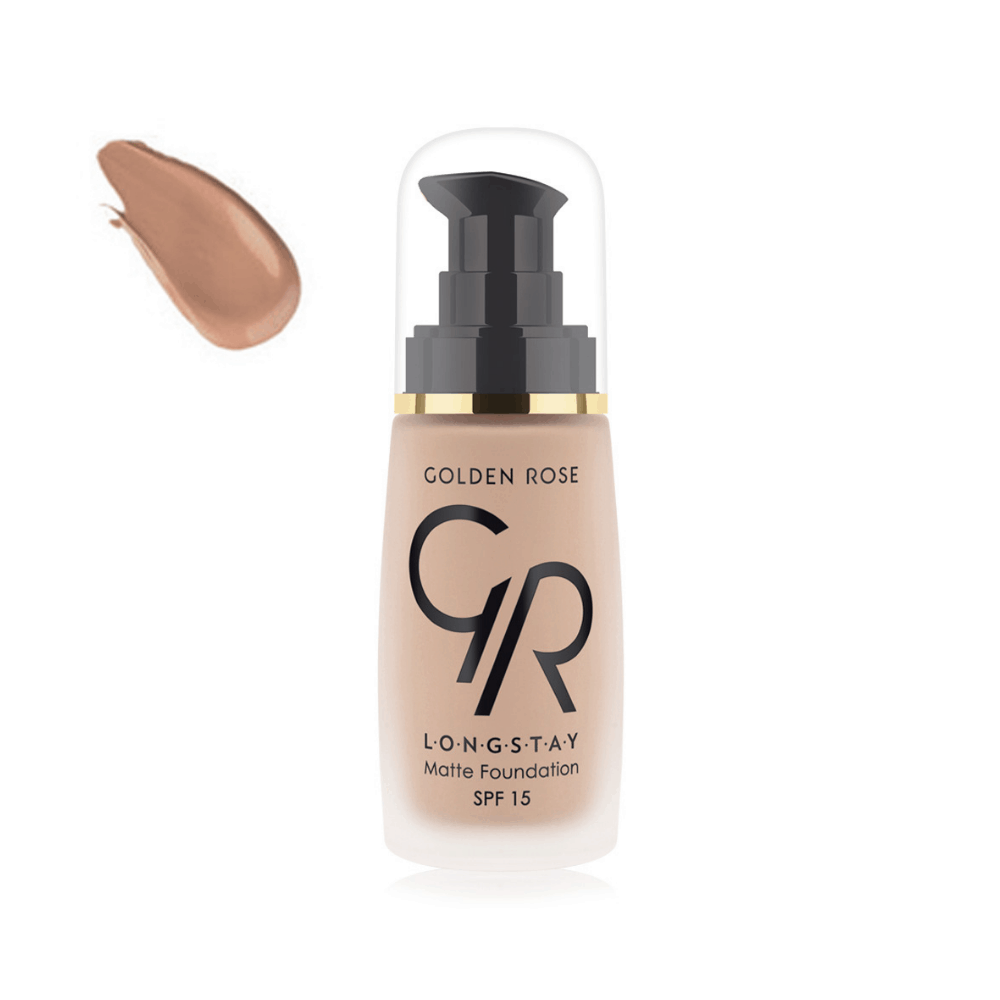 Longstay makeup foundation spf15 από την Golden Rose, με σύνθεση χωρίς λάδι (oil-free) που διαρκεί 16 ώρες, παρέχοντας στην επιδερμίδα σας εξαιρετική κάλυψη και απόλυτα ματ τελείωμα για αψεγάδιαστο αποτέλεσμα.