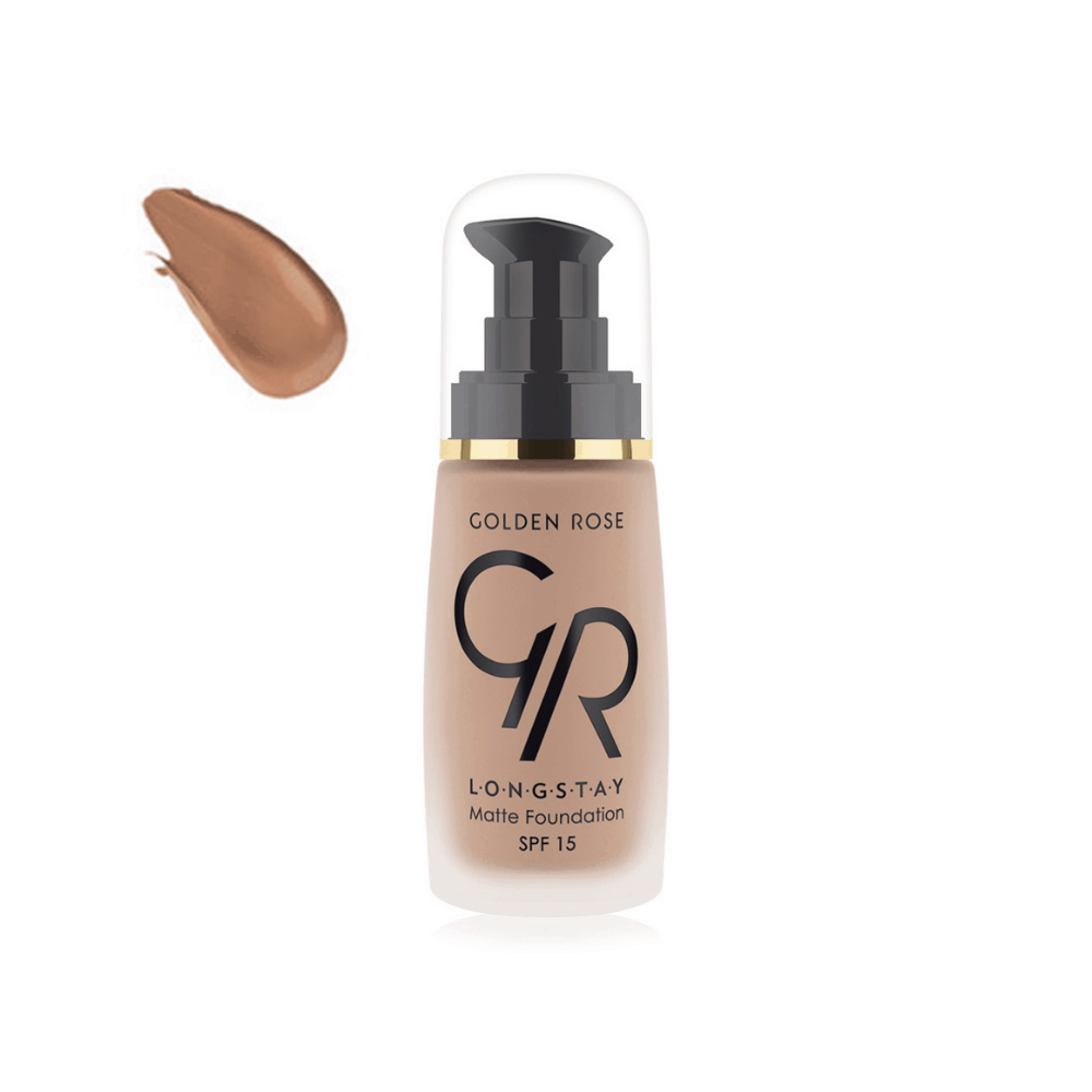 Longstay makeup foundation spf15 από την Golden Rose, με σύνθεση χωρίς λάδι (oil-free) που διαρκεί 16 ώρες, παρέχοντας στην επιδερμίδα σας εξαιρετική κάλυψη και απόλυτα ματ τελείωμα για αψεγάδιαστο αποτέλεσμα.