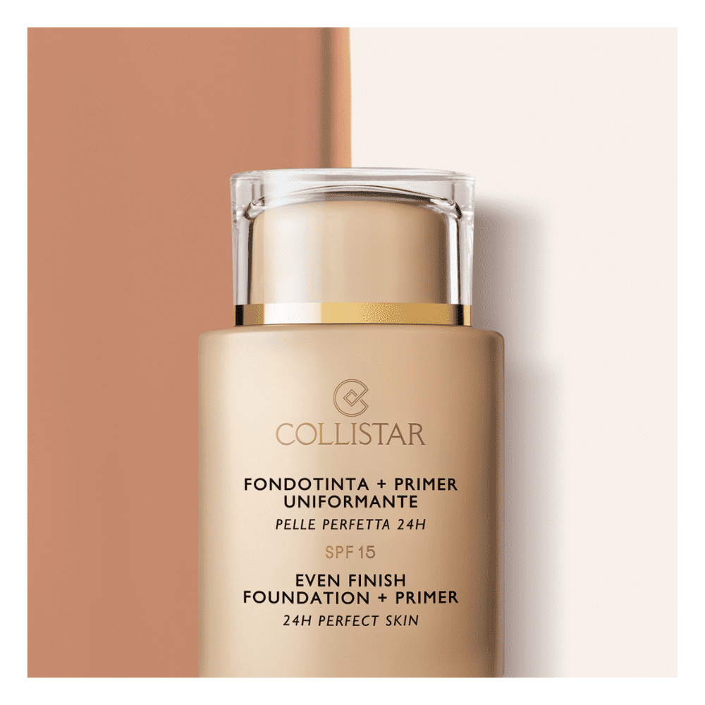 Το Collistar Even Finish Foundation + Primer 24Η perfect skin είναι ένας συνδυασμός make-up foundation και ενός primer σε ένα προϊόν! Για τέλειο δέρμα και make-up που διατηρείται άψογο επί 24 ώρες χωρίς να χρειάζεται ανανέωση. Περιέχει το αποκλειστικό Hydro-Uniforming Complex® το οποίο ενυδατώνει την επιδερμίδα ενώ παράλληλα χαρίζει διαύγεια και εξισορροπεί τον δερματικό τόνο. Οι νέας γενιάς χρωστικές εγγυώνται σταθερότητα και φωτεινή όψη σε όλους τους τύπους φωτός (φυσικό και τεχνητό).