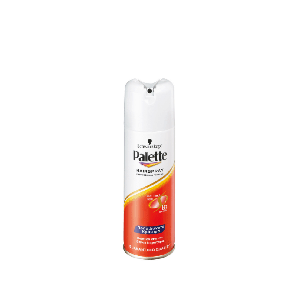 Το Schwarzkopf Palette Hairspray είναι ένα spray φιξαρίσματος για πολύ δυνατό κράτημα. Εξασφαλίζει κράτημα διαρκείας, στεγνώνει γρήγορα, δεν κολλάει τα μαλλιά και αντέχει στην υγρασία.