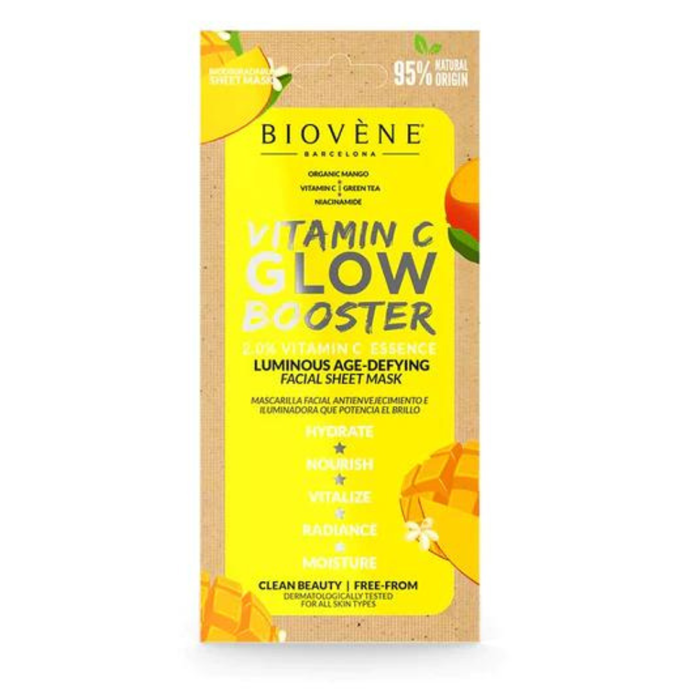 Η VITAMIN C GLOW BOOSTER Age-Defying Organic Mango Biodegradable Sheet Mask είναι βιοδιασπώμενη μάσκα προσώπου μιας χρήσης με με βιταμίνη C (2%) και οργανικό μάνγκο που προσφέρει φωτεινότητα και λάμψη.