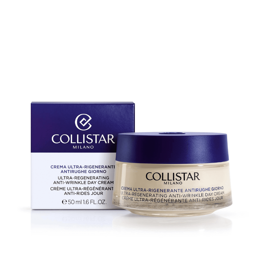 Η Collistar Ultra-Regenerating Anti-Wrinkle Day Cream είναι αντιρυτιδική κρέμα ημέρας με δράση ανάπλασης η οποία χρησιμοποιεί φύκια από την Ανταρκτική και ρετινόλη για αύξηση της σύνθεσης του κολλαγόνου, της ελαστίνης και της φιμπρονεκτίνης εξασφαλίζοντας έτσι ενισχυμένη αντιγηραντική δράση. Αυτή η κρέμα είναι εμπλουτισμένη με το σύμπλεγμα Nucleoxydic, υαλουρονικό οξύ, βιταμίνη Ε, βήτα-γλυκάνη και ευρέος φάσματος φίλτρα UV, ώστε να αναγεννά τους ιστούς και να εξασφαλίζει αντιρυτιδική δράση και εντατική λείανση της επιδερμίδας.