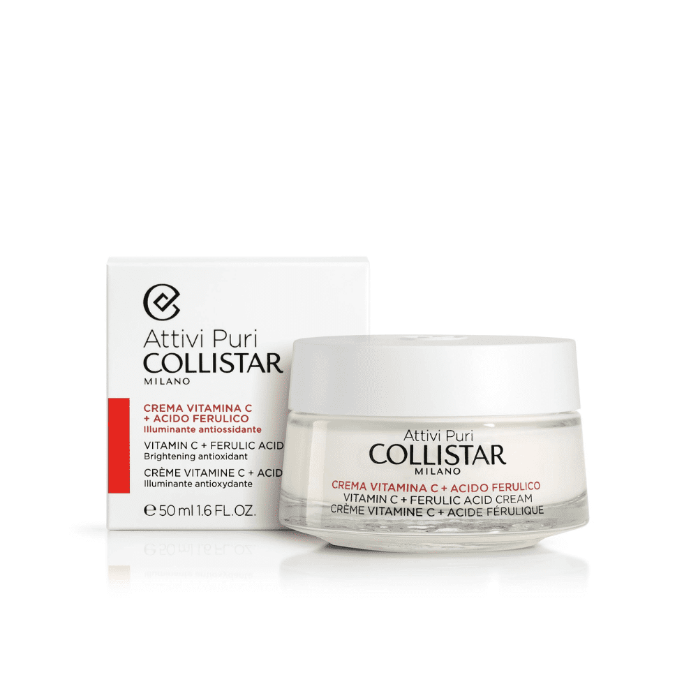 Η Collistar Vitamin C + Ferulic Acid Cream είναι ελαφριά, ρευστή κρέμα που φωτίζει και εξομαλύνει την επιδερμίδα, προστατεύει το δέρμα από το οξειδωτικό στρες που προκαλείται από τις ελεύθερες ρίζες, διατηρώντας την επιδερμίδα νεανική. Χάρη στην συνθεσή της η οποία είναι εμπλουτισμένη με καθαρό Αιθυλικό-Ασκορβικό οξύ και Φερουλικό Οξύ, η επιδερμίδα γίνεται απαλή, σφριγηλή και γεμάτη ενέργεια.