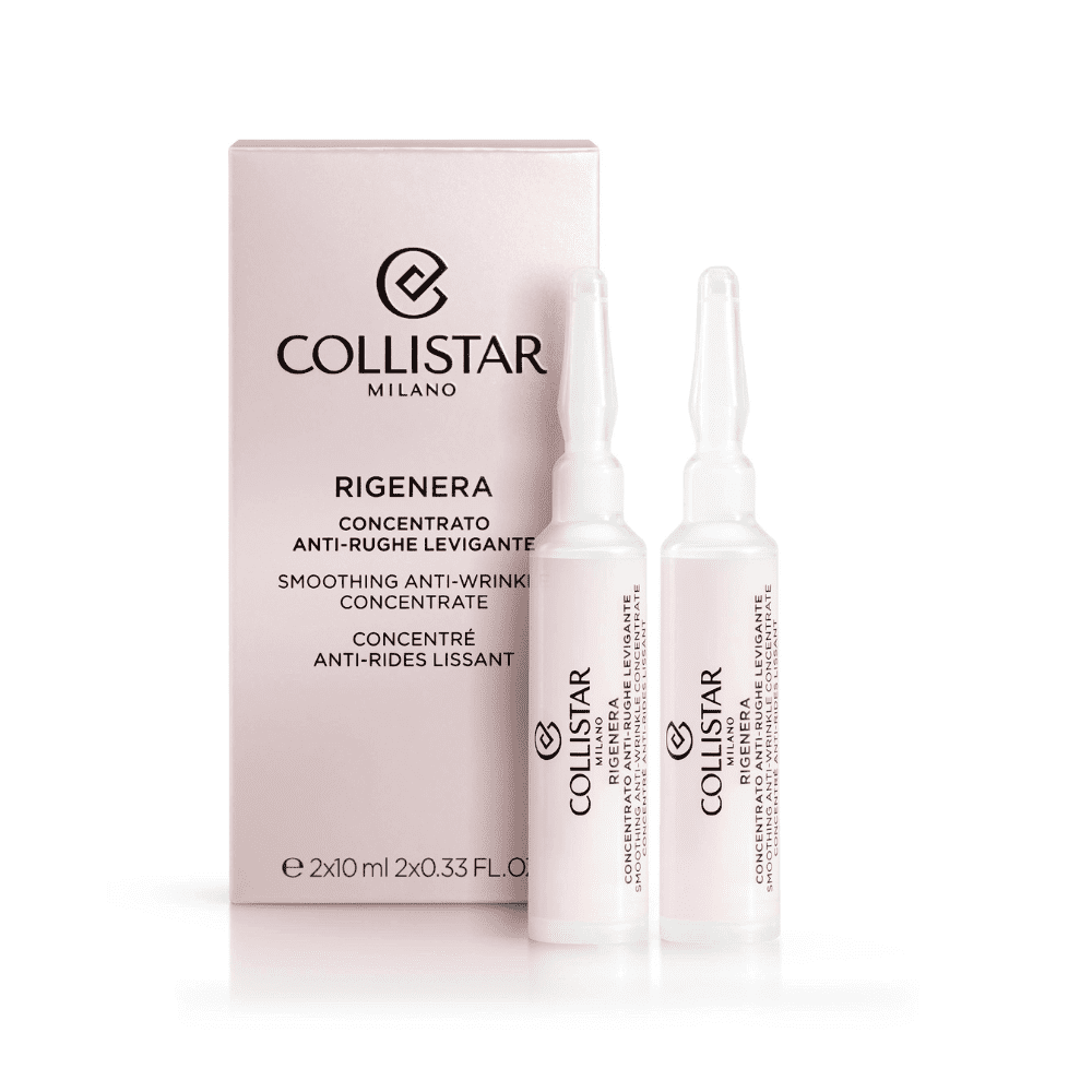 Το Collistar Rigenera Smoothing Anti-Wrinkle Concentrate είναι ένα συμπύκνωμα λείανσης κατά των ρυτίδων που προσφέρει μία εντατική, υψηλής απόδοσης αντιρυτιδική θεραπεία “σοκ” με στοχευμένη δράση για τη διόρθωση και την καταπολέμηση των ρυτίδων. Διεγείρει την κυτταρική επιδιόρθωση με αναπλαστική δράση. Η επανασφραγιζόμενη μορφή φιαλιδίου επιτρέπει την ακριβή και πρακτική εφαρμογή για συνολική θεραπεία περίπου 20 ημερών.
