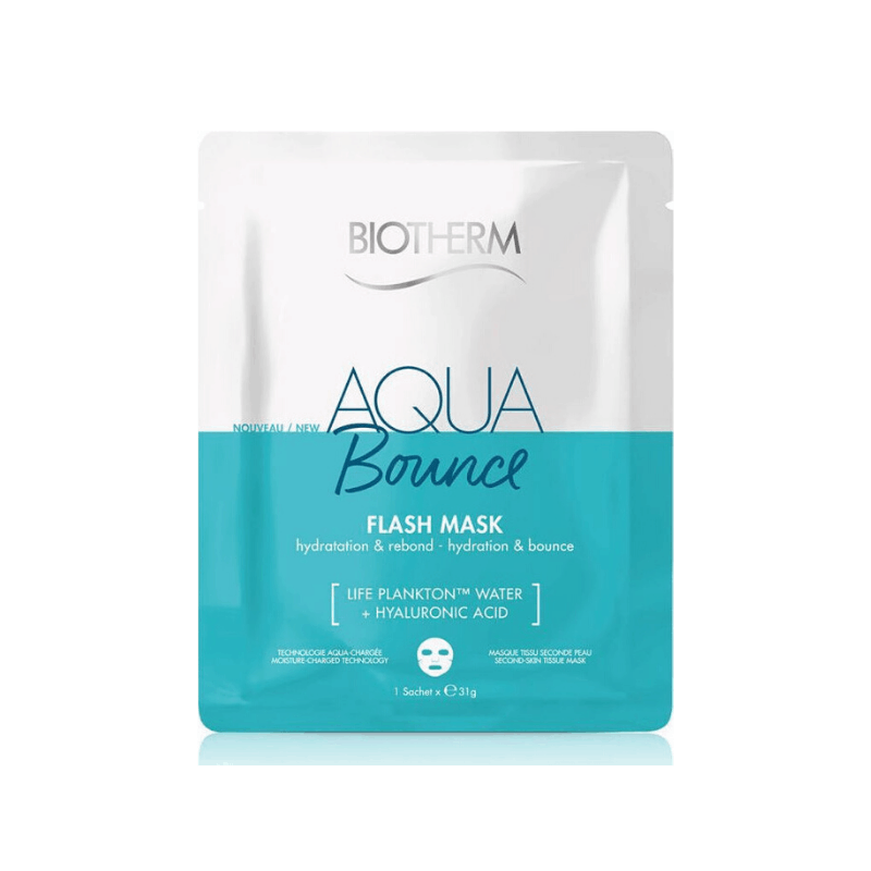 Η Aqua Bounce Flash Mask είναι μια ενυδατική υφασμάτινη μάσκα προσώπου που προσφέρει στην επιδερμίδα βαθιά ενυδάτωση, χάρη στον ισχυρό συνδυασμό υαλουρονικού οξέος και προβιοτικού νερού Life Plankton, για επιδερμίδα πιο ελαστική με μία εφαρμογή. Μια μάσκα είναι αρκετή για βαθιά ανανεωμένη, απαλή και εξαιρετικά δροσερή επιδερμίδα. Με την υπογραφή της Biotherm