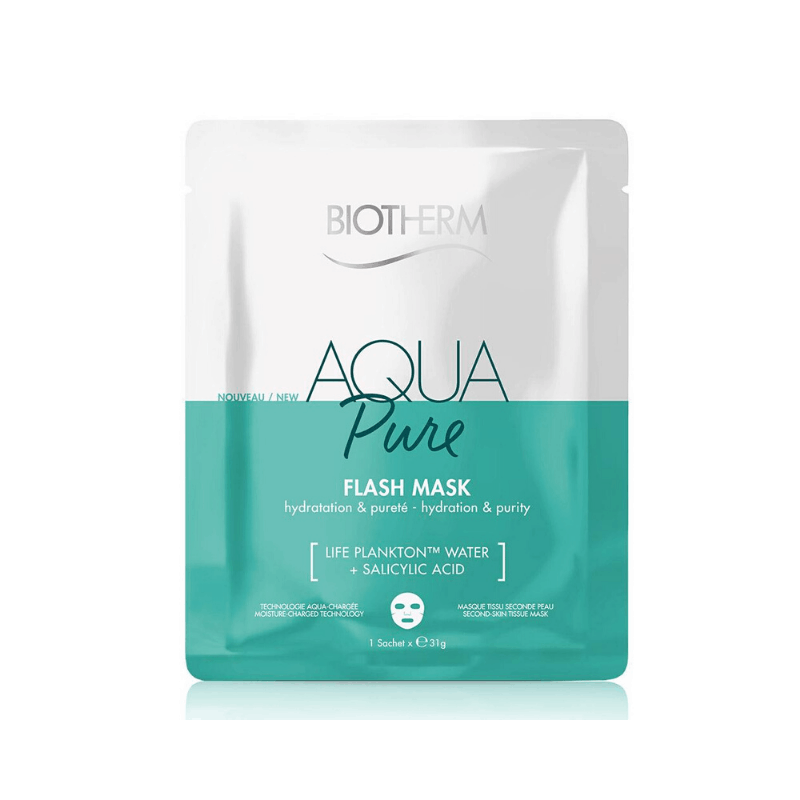 Η Aqua Pure Flash Mask είναι μια ενυδατική υφασμάτινη μάσκα προσώπου που προσφέρει στην επιδερμίδα βαθιά ενυδάτωση, χάρη στον ισχυρό συνδυασμό σαλικυλικού οξέος και του προβιοτικού νερού Life Plankton, για επιδερμίδα πιο καθαρή με μία εφαρμογή. Μια μάσκα είναι αρκετή για να αναπληρώσει βαθιά την επιδερμίδα, με τους πόρους να είναι λιγότερο ορατοί και η επιδερμίδα πιο φρέσκια και καθαρή. Με την υπογραφή της Biotherm