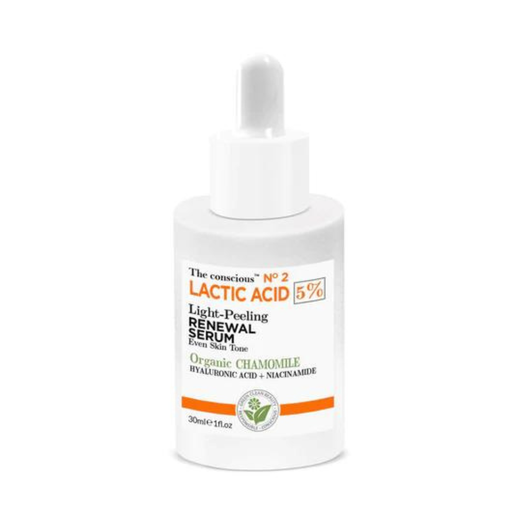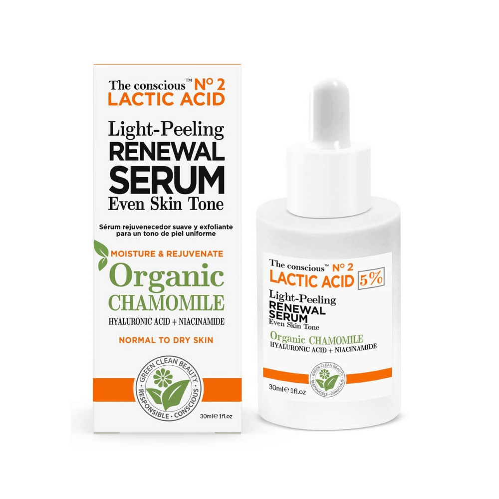 Το The conscious Lactic Acid Light Peeling Renewal Serum Organic Chamomile είναι ορός απολέπισης και ανανέωσης με γαλακτικό οξύ και χαμομήλι. Ο ορός ανανέωσης για απολέπιση με γαλακτικό οξύ, υαλουρονικό οξύ, νιασιναμίδη και οργανικό χαμομήλι. Ανανεώνει, ενυδατώνει και απαλύνει την επιδερμίδα για να βελτιώσει την υφή της και να αναδείξει τη νεανική της λάμψη.