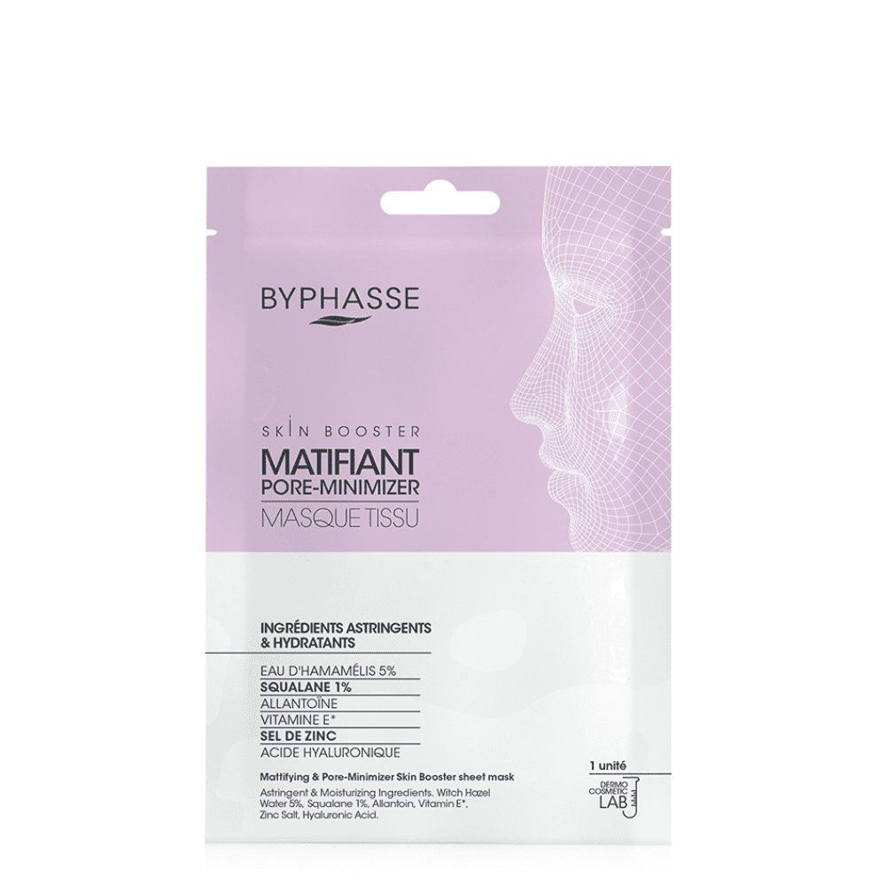 Η Mattifying & Pore-Minimizer Skin Booster Sheet Mask είναι υφασμάτινη που ελαχιστοποιεί τους πόρους και βοηθά στη μείωση της γυαλάδας του δέρματος. Η σύνθεσή της περιέχει συστατικά που βοηθούν στην ομαλοποίηση της σμηγματογόνου έκκρισης και στη μείωση του μεγέθους των πόρων.