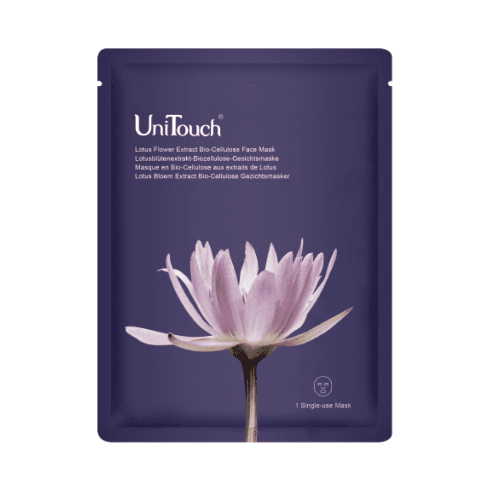 H UniTouch Lotus Flower Extract Bio-Cellulose Face Mask είναι μάσκα προσώπου από λεπτές ίνες κυτταρίνης με εκχύλισμα λωτού, φύλλων baobab και τουλίπας που βοηθούν στην αποκατάσταση των θρεπτικών συστατικών της επιδερμίδας που εξασθενούν λόγω της μακροχρόνιας αφυδάτωσης. Μείγμα μάραθου βρετανικών ακτών με θαλασσινό νερό για την καλύτερη απορρόφηση των συστατικών. Η μάσκα από βιοκυτταρίνη εφαρμόζει τέλεια στο πρόσωπό, χαρίζοντας μία λαμπερή και ελαστική αίσθηση μετά την εφαρμογή.