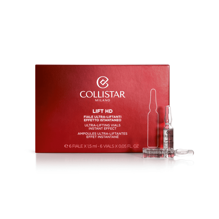 Το Collistar Ultra - Lifting Vials Instant Effect Face - Neck - Decollete είναι αμπούλες ανόρθωσης για το πρόσωπο, το λαιμό και το ντεκολτέ. Η αντιγηραντική τους δράση ενισχύεται χάρη στο νέο και εξειδικευμένο σύμπλεγμα Lift HD®. Αποτελούν μια θεραπεία «επείγουσας ανάγκης» πριν από ένα σημαντικό γεγονός ή όταν το πρόσωπο φαίνεται κουρασμένο. Εξομαλύνουν τα χαρακτηριστικά του προσώπου, μειώνουν τις ρυτίδες και εξαφανίζουν τα σημάδια που δημιουργούνται από το στρες και την κούραση, προσφέροντας ένα αποτέλεσμα λάμψης που κρατάει για ώρες.
