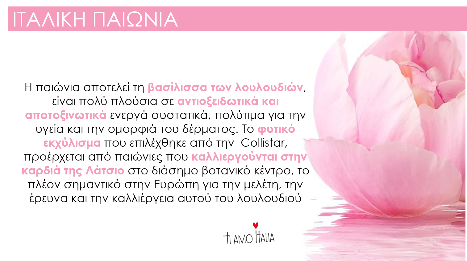 - Εκχύλισμα Ιταλικής Παιώνιας (Αποτοξίνωση, αντιοξειδωτική δράση)