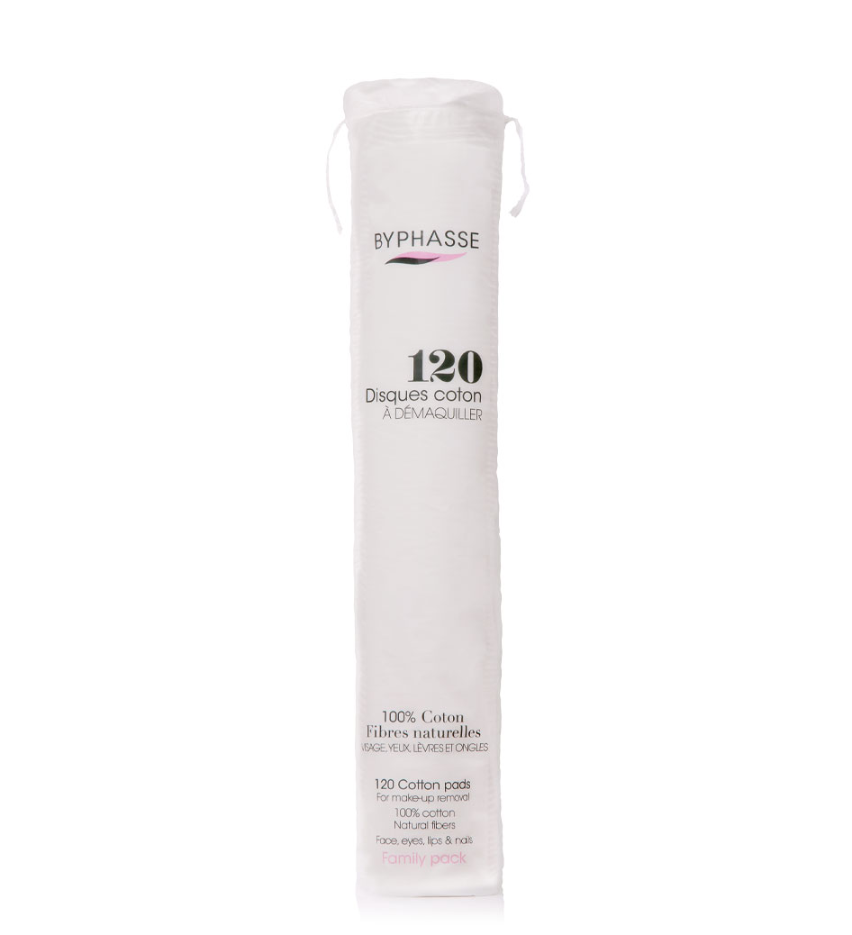Βαμβακεροί δίσκοι ντεμακιγιάζ διπλής όψης Byphasse από φυσικές ίνες που αφαιρούν εύκολα το μακιγιάζ και τoυς ρύπους.