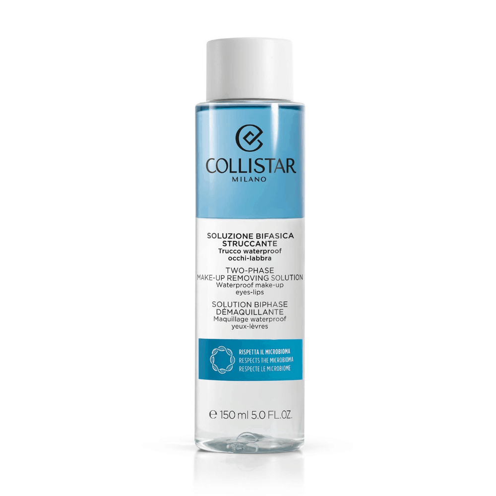 Η Collistar Two-Phase Make-Up Removing Solution Waterproof είναι μία διφασική λοσιόν ντεμακιγιάζ που αφαιρεί τέλεια το μακιγιάζ (συμπεριλαμβανομένου του αδιάβροχου), χωρίς να αφήνει υπολείμματα ελαίου. Είναι ιδανική για έντονο και μακράς διάρκειας μακιγιάζ. Είναι φιλική προς το μικροβίωμα διότι είναι εμπλουτισμένη με ένα ειδικό φυσικό πρεβιοτικό - Ινουλίνη - που μπορεί να "θρέψει" και να ενισχύσει τα καλά βακτήρια προάγοντας το υγιές δέρμα.