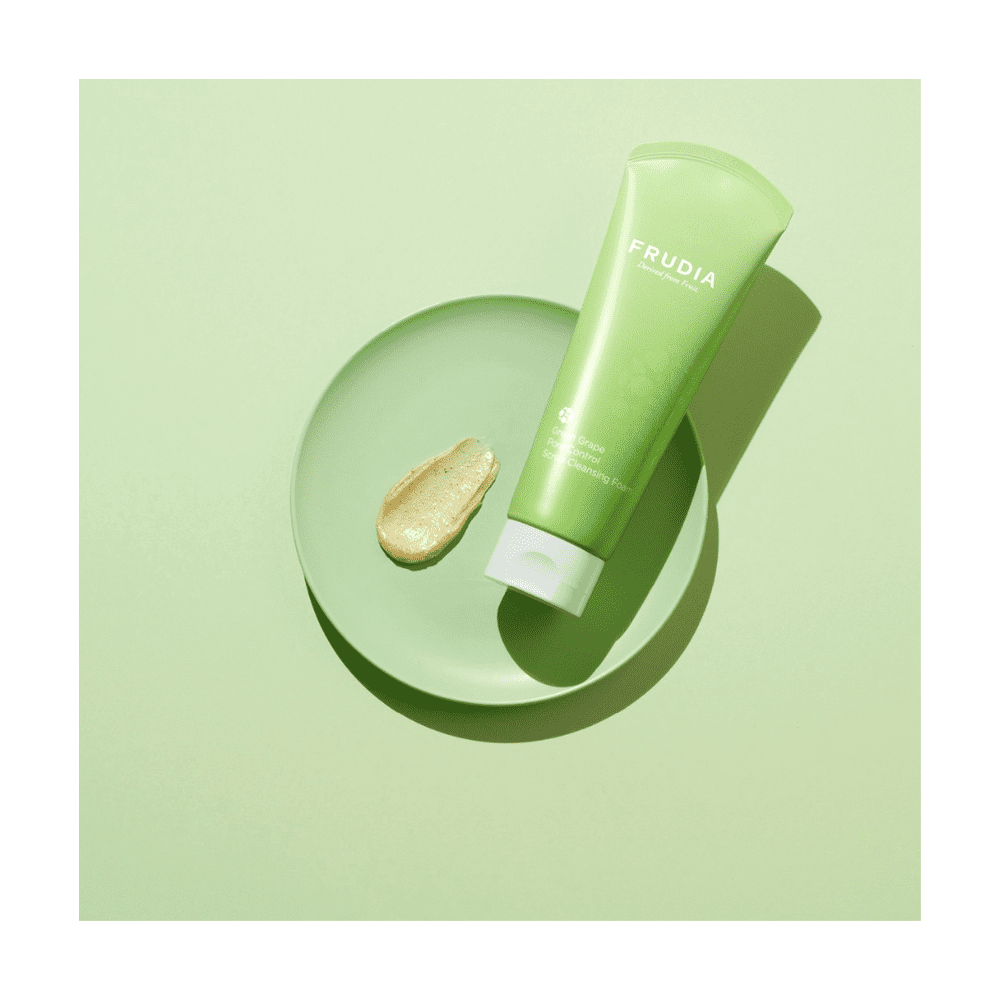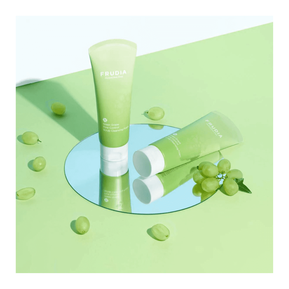 To Frudia Green Grape Pore Control Scrub Cleansing Foam είναι αφρώδες scub και τζελ καθαρισμού προσώπου με εκχύλισμα πράσινου σταφυλιού που ρυθμίζει και λειαίνει τους πόρους. Η υφή του τζελ μετατρέπεται σε πλούσιο αφρό και εξαλείφει άμεσα την περίσσεια ποσότητα σμήγματος και τα μαύρα σμήγματα στην επιφάνεια της επιδερμίδας.