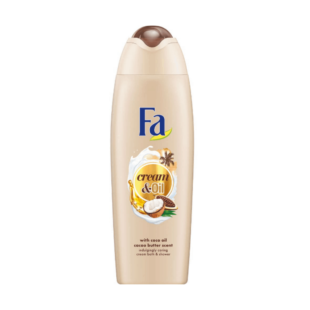 Το αφρόλουτρο Fa Cream & Oil Cacao Butter καθαρίζει απαλά το δέρμα. Δημιουργεί ευχάριστο αφρό με υπέροχο διακριτικό άρωμα βούτυρο κακάο και έλαιο καρύδας που συνδυάζει φρεσκάδα και μια εμπειρία μπάνιου που ξυπνάει τις αισθήσεις.