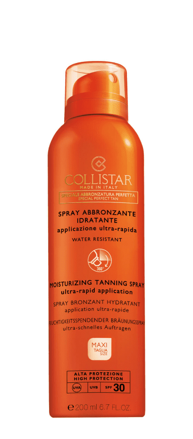 Το Collistar Moisturizing Tanning Spray είναι ενυδατικό Spray μαυρίσματος SPF 30 με γρήγορη εφαρμογή και ανθεκτικότητα στο νερό. Ασφαλές, πρακτικό προϊόν για εύκολη και γρήγορη χρήση, ιδανικό για ένα τέλειο μαύρισμα.