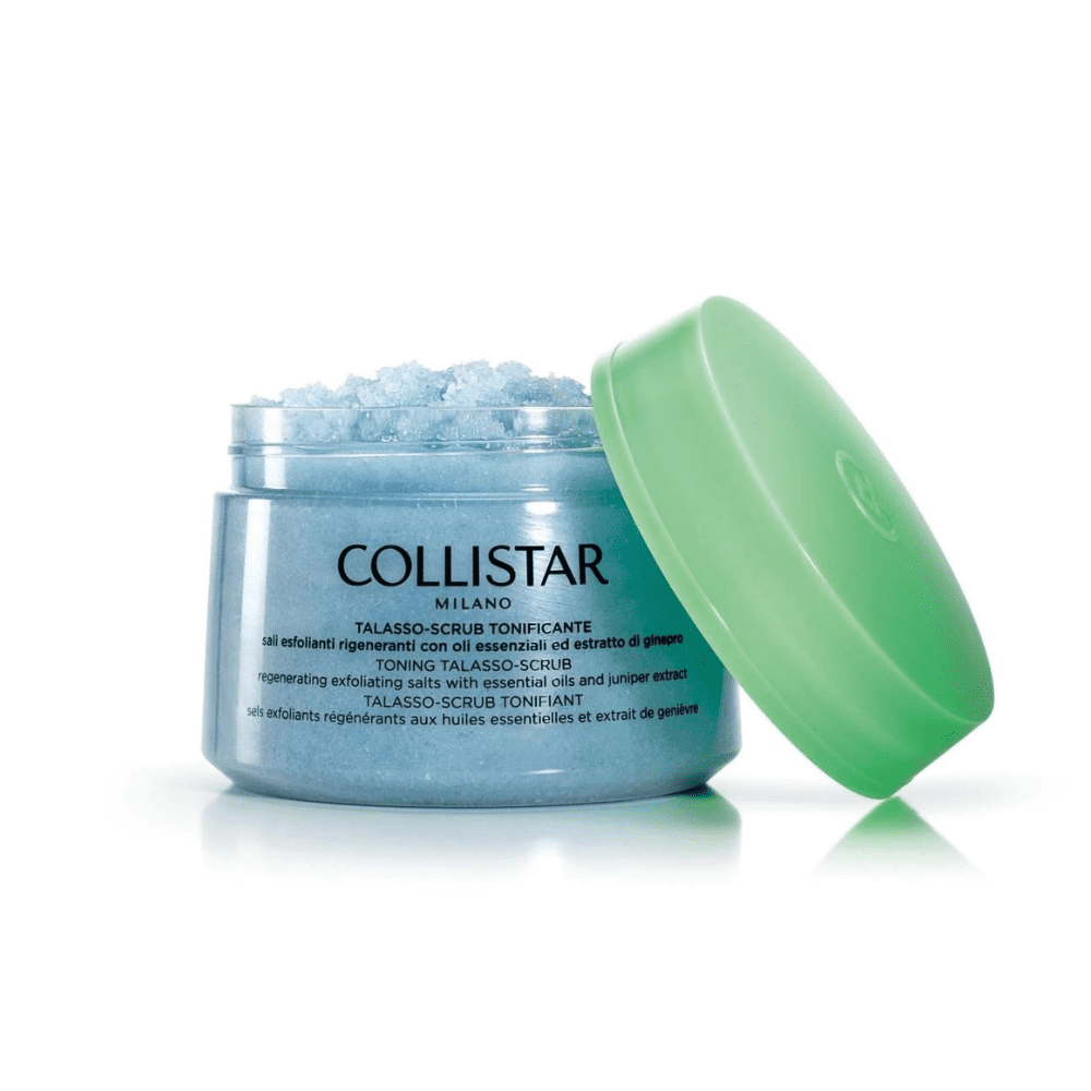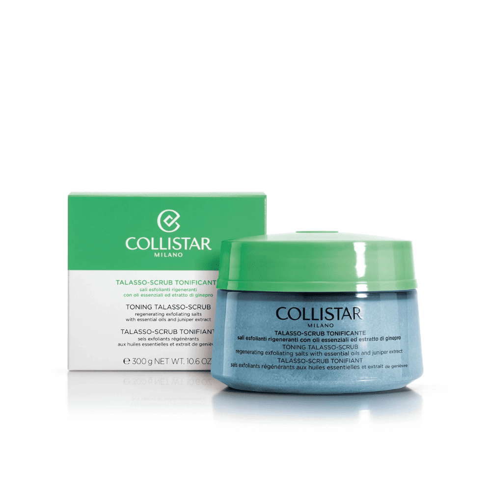 To Collistar Toning Talasso Scrub είναι scrub με αιθέρια έλαια και εκχύλισμα άρκευθου που συνδυάζει τα οφέλη της θαλασσοθεραπείας και της αρωματοθεραπείας με τις απίστευτες ιδιότητες του πολύτιμου Σαρδηνικού Juniper. Πολύ περισσότερο από ένα απλό τρίψιμο, είναι μια θεραπεία πολλαπλών χρήσεων η οποία λειαίνει και αναζωογονεί με ένα μείγμα θαλάσσιων αλάτων και σαρδηνιακού Fleur de Sel.