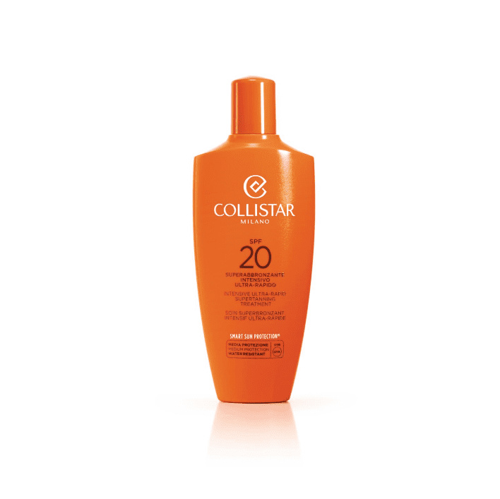 H Collistar Ultra-Rapid Supertanning Treatment είναι λοσιόν για εντατική θεραπεία μαυρίσματος. Μοναδικό στο είδος του, επαναστατικό προϊόν που διασφαλίζει πρωτοφανές μαύρισμα. Η αποτελεσματική δράση ενεργοποίησης του μαυρίσματος επιταχύνει και ενισχύει την παραγωγή μελανίνης επιτρέποντας έτσι την απόκτηση του μαυρίσματος σε πολύ σύντομο χρονικό διάστημα ακόμα και όταν η ηλιακή ακτινοβολία δεν είναι ιδιαίτερα έντονη. Πλούσιο σε φυτικά έλαια και βιταμίνη Ε, εξασφαλίζει βαθιά θρέψη, ενυδάτωση και παρέχει αντιγηραντική δράση.