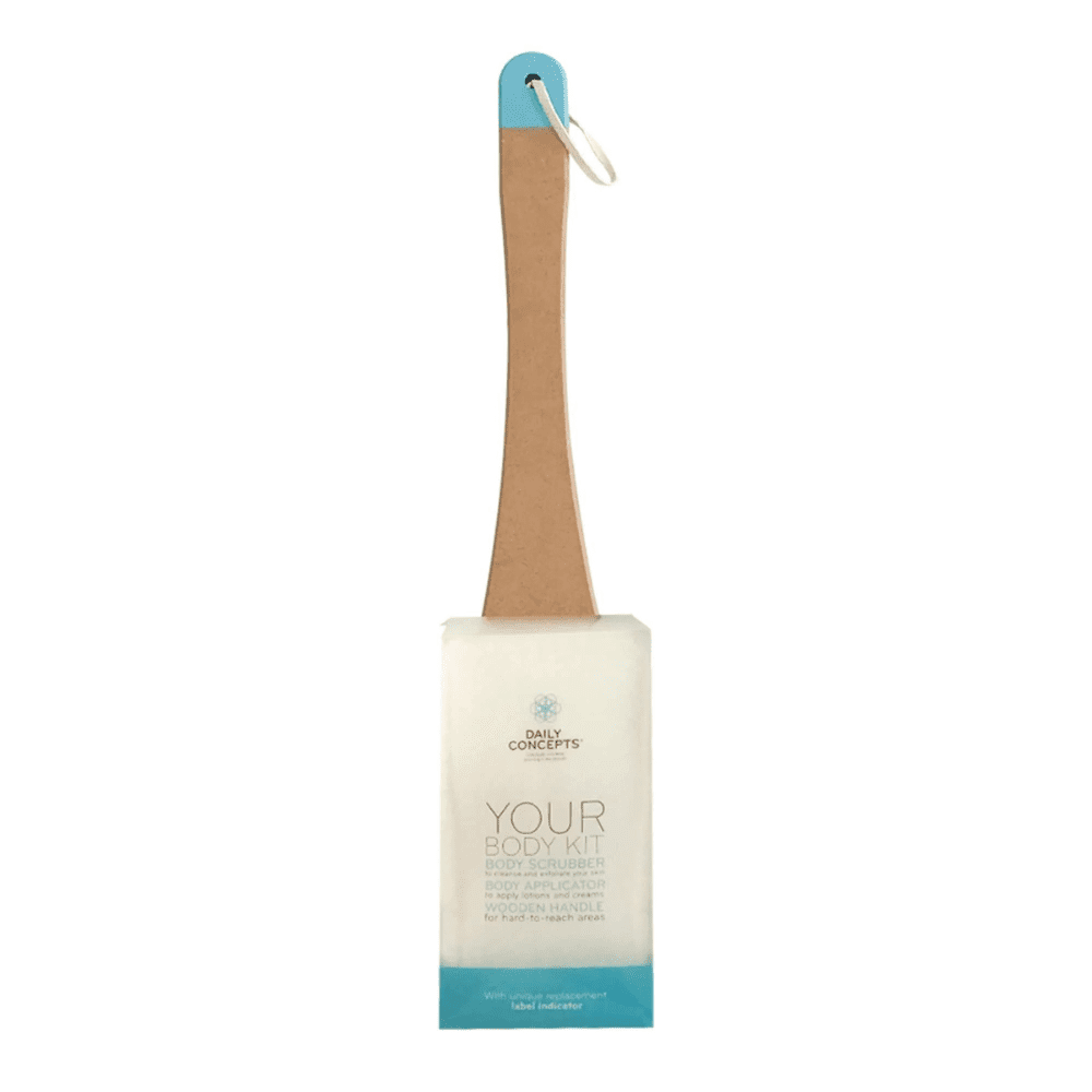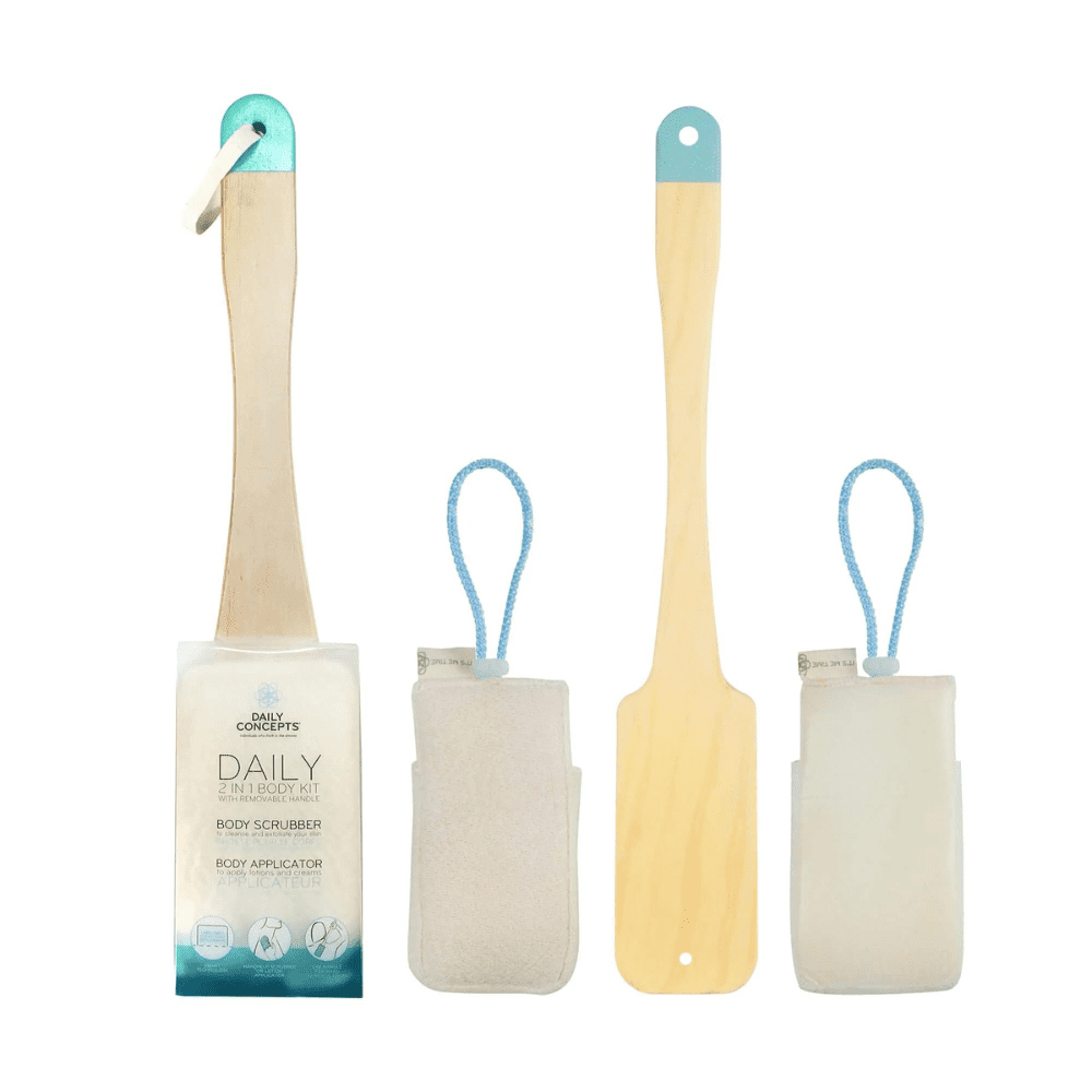 Περιλαμβάνει ένα απολεπιστικό σώματος- ιδανικό για απολέπιση και καθαρισμό του δέρματος, ένα απλικατέρ σώματος- για την εφαρμογή λοσιόν και ενυδατικής κρέμας, και μια ξύλινη λαβή για τις δυσπρόσιτες περιοχές.