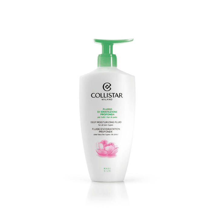 Το Collistar Body Deep Moisturizing Fluid είναι ενυδατικό γαλάκτωμα σώματος που ενυδατώνει, τονώνει, αναζωογονεί και χαρίζει απίστευτη απαλότητα. Μία θεραπεία βαθιάς ενυδάτωσης που περιποιείται το ξηρό δέρμα και εγγυάται έντονη ενυδάτωση μακράς διάρκειας χάρη στη συνδυαστική δράση τριών πολύτιμων ενυδατικών παραγόντων: το θαλάσσιο πλαγκτόν, την αλόη και υαλουρονικό οξύ.