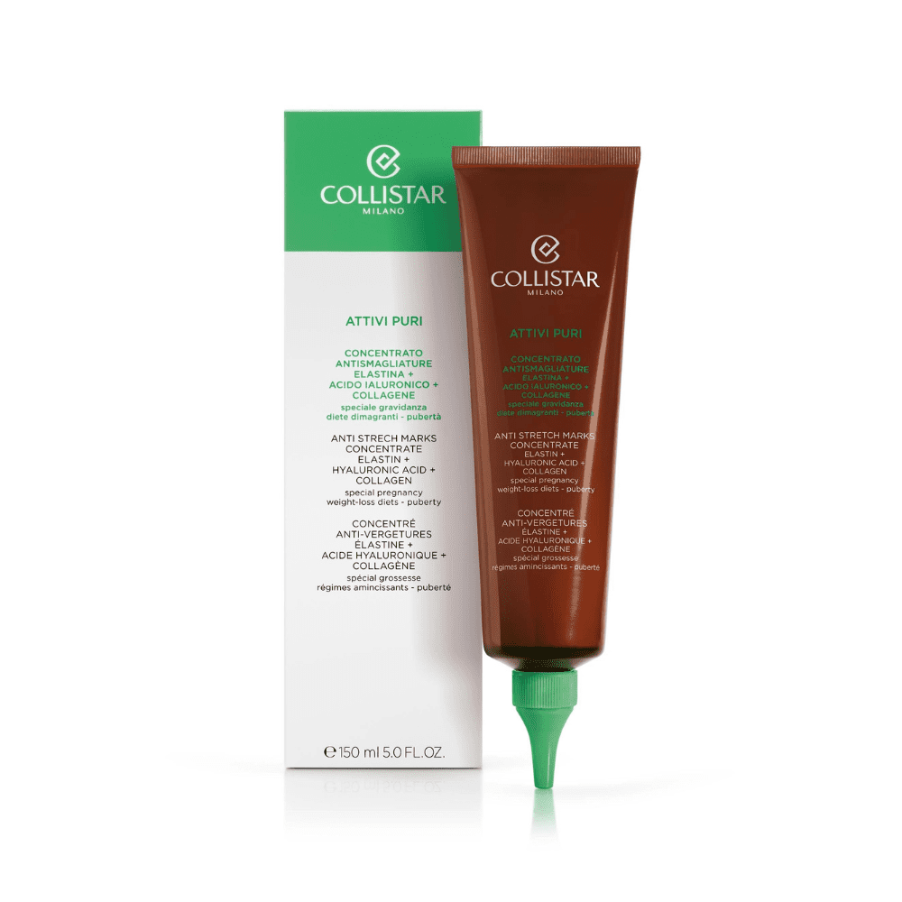 Το Collistar Pure Active Anti Strech Marks Elastin + Hyaluronic + Collagen είναι συμπύκνωμα κατά των ραγάδων με κολλαγόνο και υαλουρονικό που συνδυάζει τα τρία βασικά συστατικά για σταθερό, ελαστικό δέρμα. Η διπλή του δράση είναι βασισμένη στην πρόληψη και την αναδόμηση. Η συχνή και τακτική χρήση υπόσχεται σύσφιξη και ενδυνάμωση του ιστού του δέρματος αποτρέποντας το σχηματισμό ραγάδων. Βοηθά στη μείωση και την απαλότητα του δερματικού τόνου των ήδη υπαρχόντων ραγάδων.