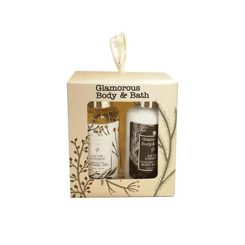 Σετ Δώρου Glamorous Body & Bath aloe vera και μέντα. Περιλαμβάνει shower gel, body lotion και σφουγγάρι σώματος.