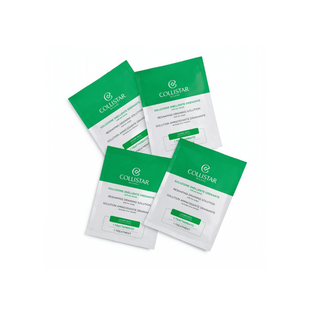 Για να διατηρήσετε τα αποτελέσματα της θεραπείας και να "συμπληρώσετε" τα Reshaping Draining Wraps, η Collistar Milano έχει επίσης σχεδιάσει μια συσκευασία αναπλήρωσης με τέσσερα φακελάκια 100 ml Reshaping Draining Solution για πρόσθετες θεραπείες.