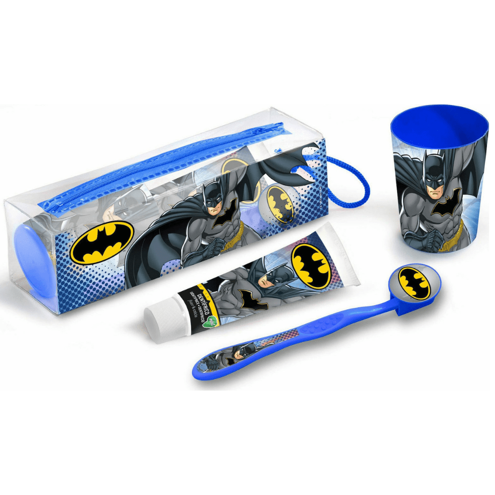 Το Lorenay Batman Dental Toiletry Bag είναι ένα σετ περιποίησης για τους μικρούς σας ήρωες που περιλαμβάνει μια παιδική οδοντόβουρτσα με κάλυμμα, ένα παιδικό πλαστικό ποτηράκι νερού και μια παιδική οδοντόκρεμα 75 ml με fluoride και ασβέστιο. Δεν καταστρέφει το σμάλτο των δοντιών. Προτείνεται για παιδιά άνω των 3 ετών.